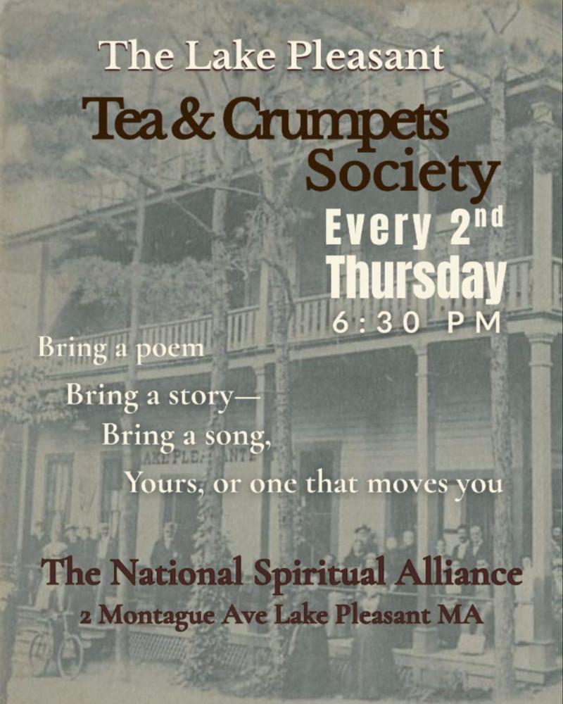 Join us for our monthly gathering of shared stories, spoken word, and creative connection. The Lake Pleasant Tea & Crumpets Society welcomes readers, writers, and listeners of all kinds to this open literary salon where words bring neighbors together and nourish the spirit.